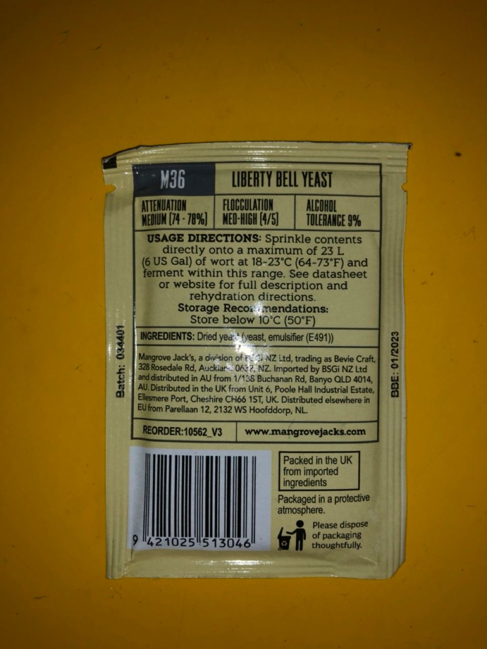 - Mangrove Jack's M36 Liberty Bell Dried Yeast