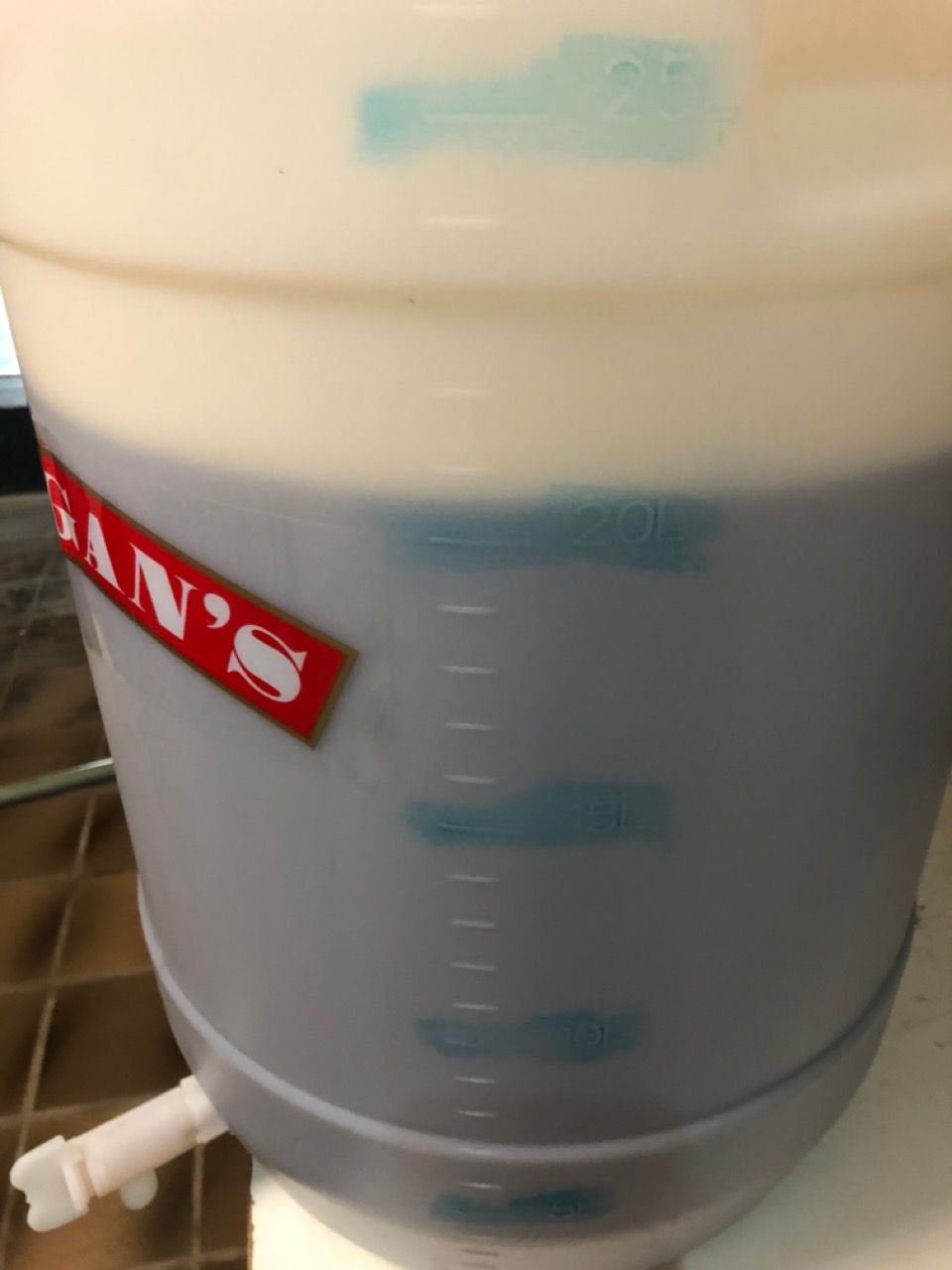 Fermentation completed and the temperature was chilled to 3.5C over the course of 5 days before the finished beer was transferred to a sanitised corny keg. This was pre-loaded with a blast of CO2 and chilled to 3.5C.
